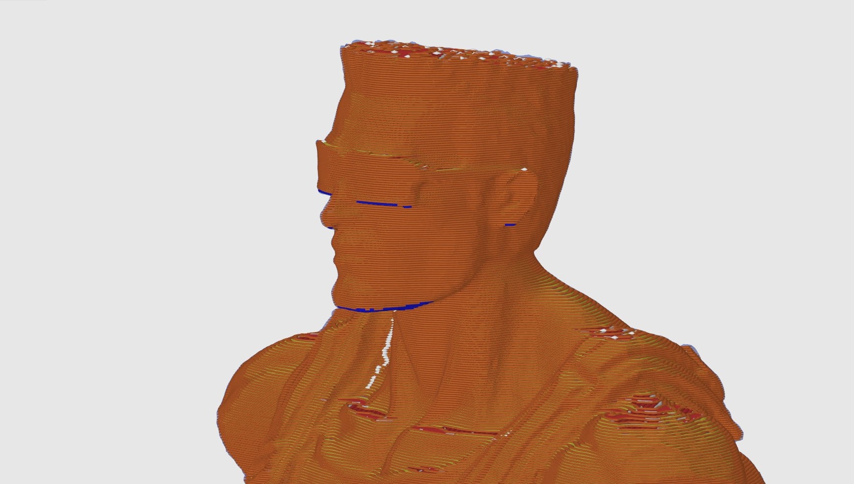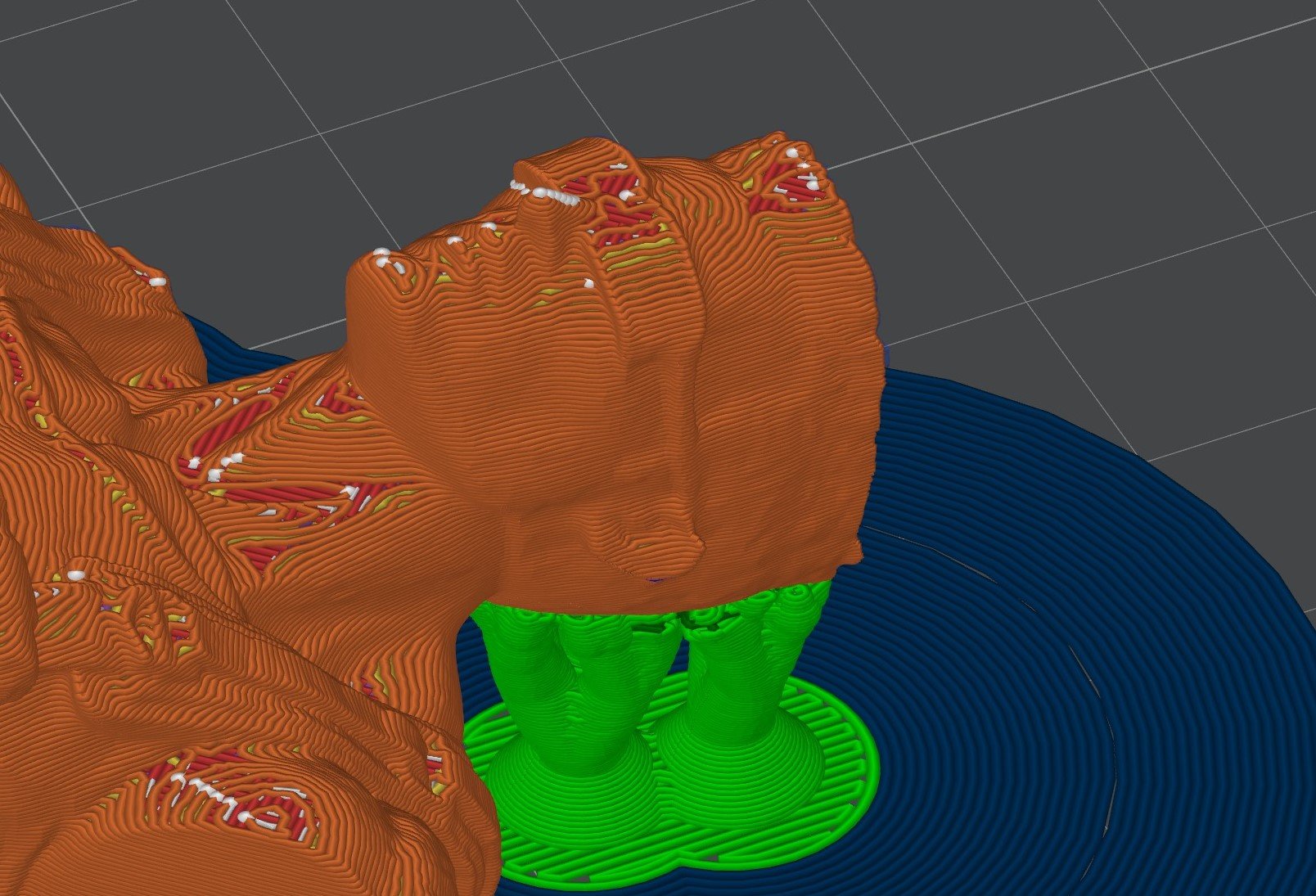 إذا كنت ترغب في الحصول على تفاصيل دقيقة على الوجه، فمن الأفضل وضع الرأس بحيث تكون ملامح الوجه مواجهة للأعلى، لتقليل التشوهات الناتجة عن طبقات الطباعة.