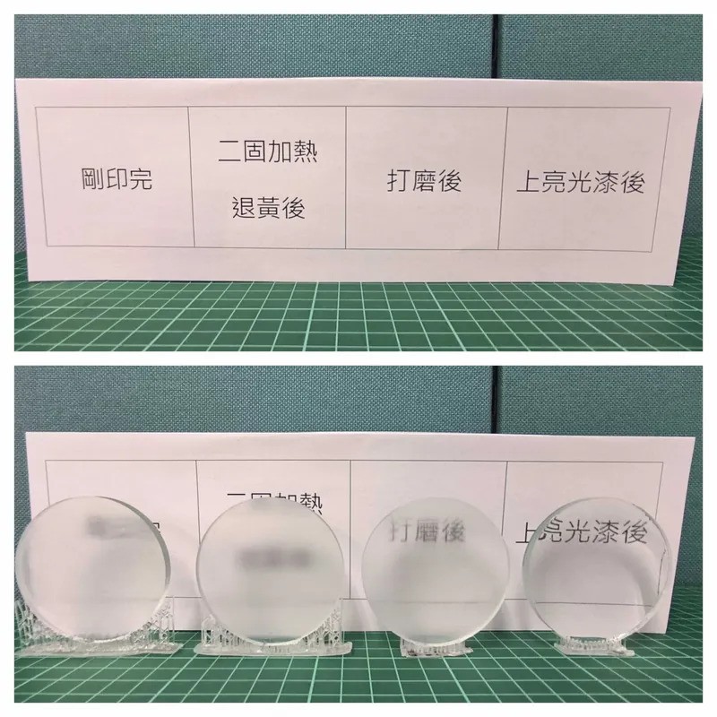 4. It is normal for the transparent printed parts to have a bit of frosted glass rather than completely clear state after cleaning and drying. If you need high transparency, you can spray transparent paint evenly on the appearance of the printed parts.